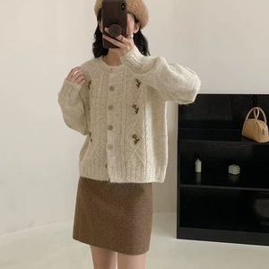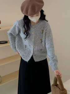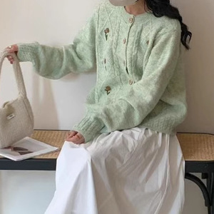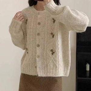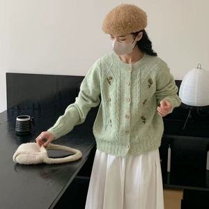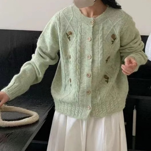 工場直販の優しいスタイルのラウンドネックルーズ長袖セーター秋冬の新しい柔らかくワックスのような年齢を軽減する女性用の多用途な花柄セーター
