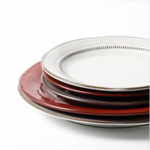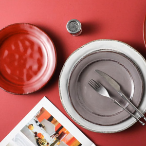 レトロなスタイルの赤い平皿浅いプレートセラミックステーキプレート洋食プレート家庭用大型皿クリエイティブディナープレート送料無料