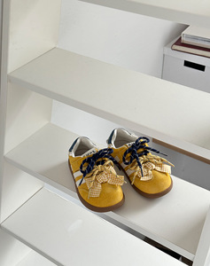 韓国スタイルの女の子の蝶結び二色靴ひも道徳訓練靴 2025 秋の新子供のソフトソールシューズカジュアルシューズ
