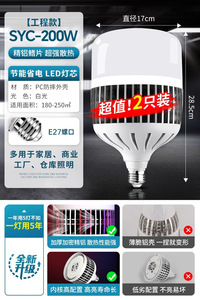 大功率灯泡螺口LED节能灯家用E27超亮强光工地厂房车间照明灯