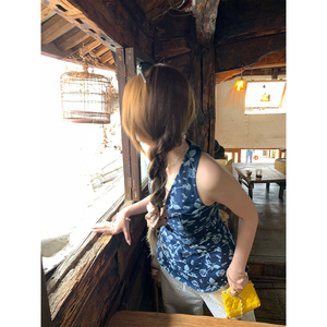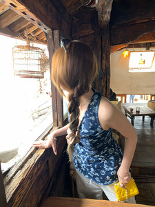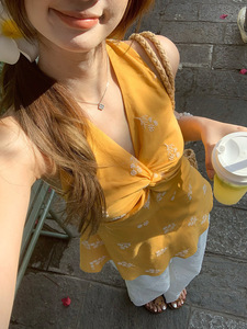 【5.20晚8点】im向 山樱漫岛~V领扭结刺绣无袖收腰显瘦挂脖小衫