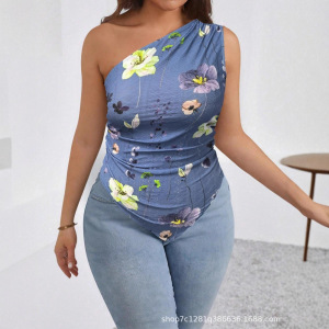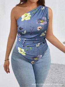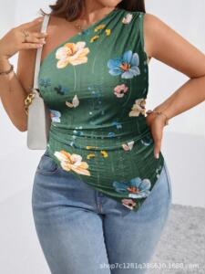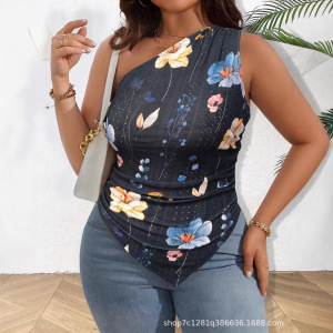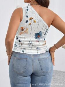 Amazon TikTok Pinduoduo 外国貿易クロスボーダーヨーロッパとアメリカのプラスサイズの婦人服新しいベストシングルショルダー斜めショルダーデザイン