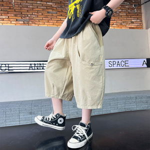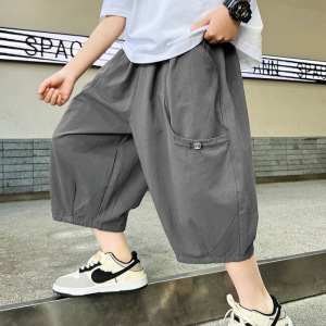 男の子グレーパンツ夏薄い2025新しい子供の夏のショートパンツ大きな子供の夏のクロップドパンツはハンサムでファッショナブルです