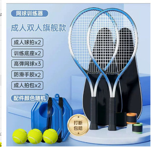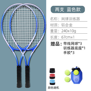 ブルーの大人用ダブルラケット + ベース * 2 + ストリング付きテニスボール * 3 + ハンドグルー * 3 + ラケットバッグ * 2