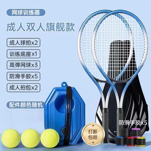 ブルー大人用ダブルラケット+ベース+テニスボール*3+ハンドグルー*3
