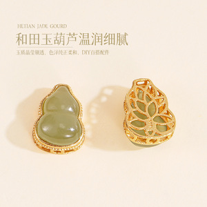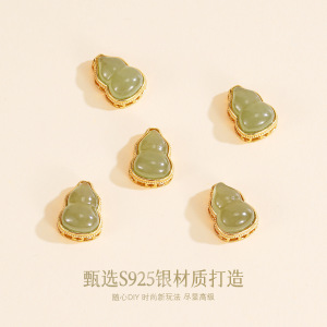 シルバーラブ S925 スターリングシルバー天然ホータン翡翠ひょうたんビーズ手作り diy ブレスレットネックレスシルバージュエリーアクセサリー