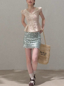 Oakmo 棉蕾丝V领少女感收腰显瘦修身设计感衬衫上衣