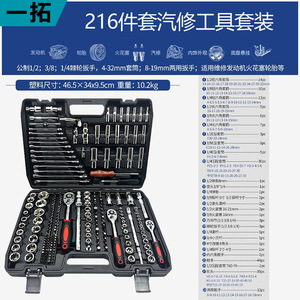 跨境热卖216件套172件棘轮套筒快速扳手汽修扳手批头维修工具套装