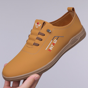 紳士靴 2025 春と秋の新作多用途トレンディなメンズスリッポンソフトレザーソフトソール中年お父さんドライビングビーニーシューズ