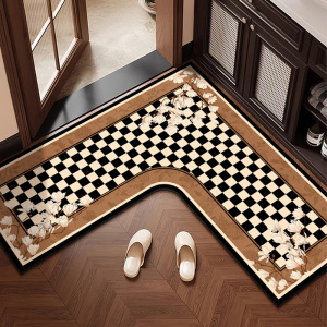 L字型珪藻土フロアマットアメリカンレトロバスルームフロアマットトイレトイレお手入れ簡単速乾滑り止め防水マット