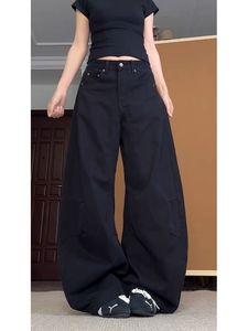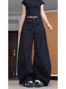 美式复古黑色廓形弯刀牛仔裤女新款高街宽松显瘦直筒阔腿裤子