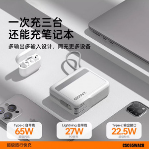 65W 急速充電パワーバンク - アイボリーホワイト [双方向急速充電/デュアルワイヤー/AC 折りたたみプラグ付き]