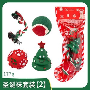 升级3号圣诞袋套装【啃咬绳+圣诞老人头+圣诞绿拐杖+网球】