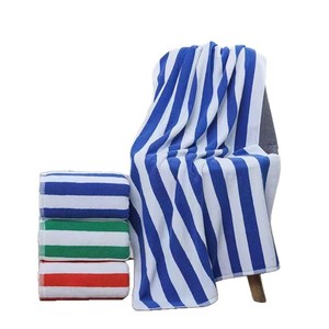 クロスボーダー卸売青と白のストライプのバスタオル、毛羽立ちのある純綿ビーチタオル、外国貿易ギフト、厚みのある21ストランドのカラーストライプバスタオル