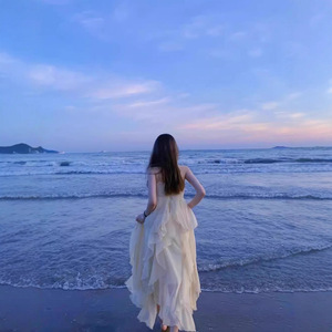 仙女裙吊带连衣裙海边度假连衣裙子夏季沙滩吊带裙长裙新杏色三亚
