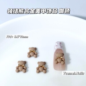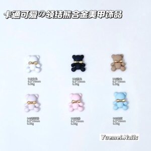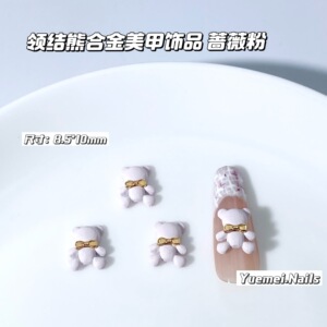 新款卡通美甲哑光蝴蝶结领结小熊饰品简约马卡龙迷你合金指甲装饰