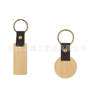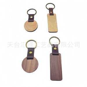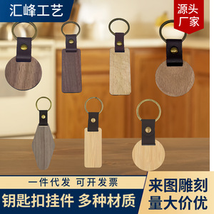 クロスボーダークオリティブナブラックウォールナット木製キーホルダー彫刻ロゴログ竹PUヘッドキーホルダーペンダント