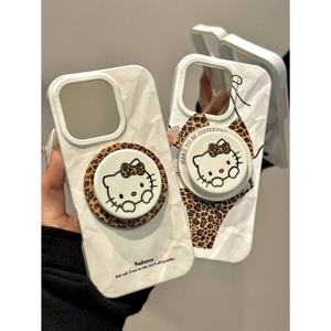 比基尼豹纹+白底豹纹蝴蝶结kt猫磁吸支架