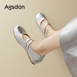 Augushiden メリージェーンシューズ女性のための 2025 夏の新しいアウターバレエスタイルフラットスカート付きシルバー小さな革靴