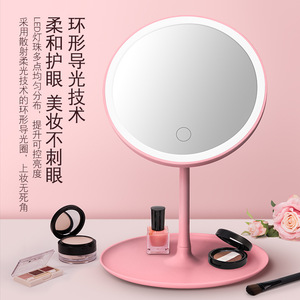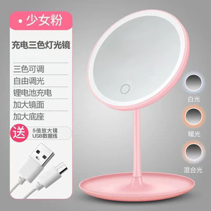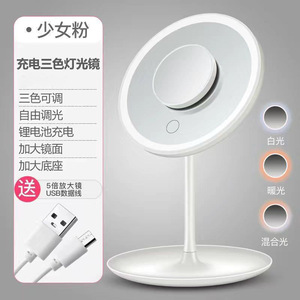 LED化粧鏡 3色調光可能 デスクトップミラー 補助光 化粧鏡 ラウンドミラー