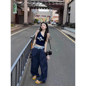 设计感斜肩背心上衣女夏季2025新款百搭高腰显瘦阔腿裤子时尚套装
