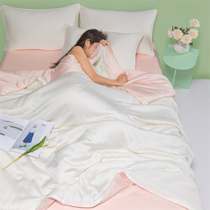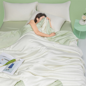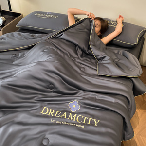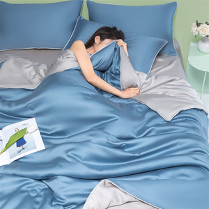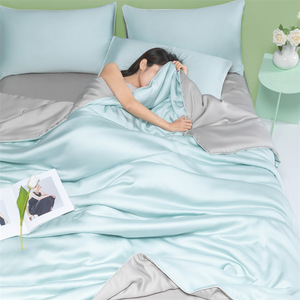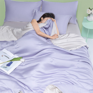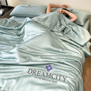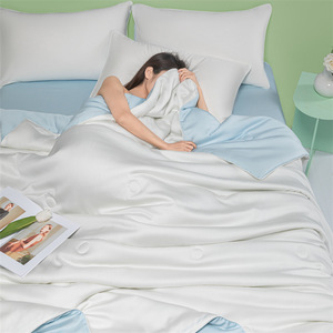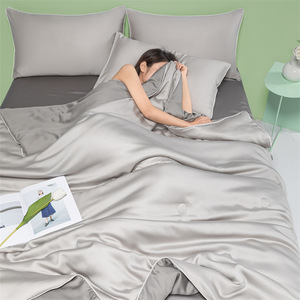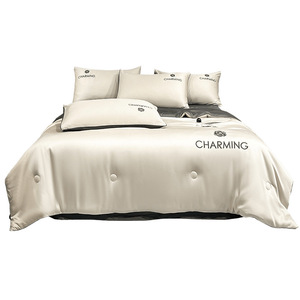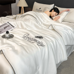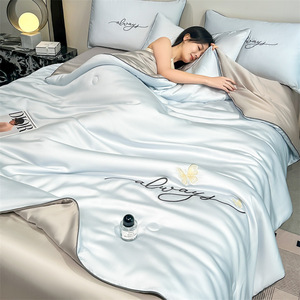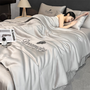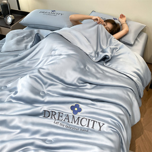 クラスA 洗えるアイスシルク刺繍サマーキルト 4点セット 空調キルト 裸で寝られるサマーキルト シーツ 涼しいシルク薄手キルト