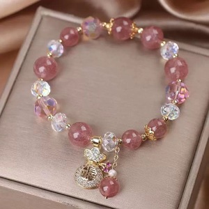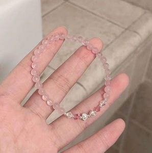 ピーチクリスタルパールブレスレット