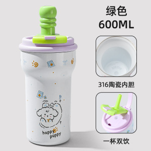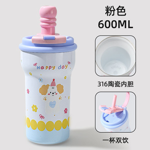 新しい 316 女の子用断熱カップ、見栄えの良いストローカップ、セラミックライナーコーヒーカップ、ギフト学生ポータブルカップ