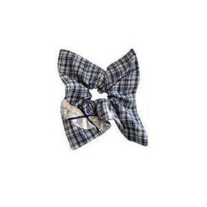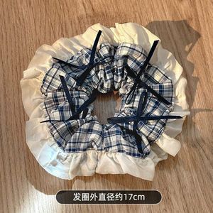 韩系蓝色格纹蝴蝶结方巾大肠发圈女高级感头圈发绳海燕头绳发饰品