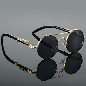 跨境通用炫酷潮流百搭装饰豹子头墨镜个性双梁金属复古圆框太阳镜
