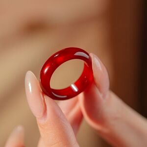 高品質の人気の赤瑪瑙カルセドニーリング翡翠リング女性の本物の翡翠リング干支年レッドリングリングギフト