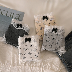 フレンチレトロ下着女性用 10A 抗菌ベビーコットンかわいい女の子ローウエストレースエッジコットンクロッチブリーフ