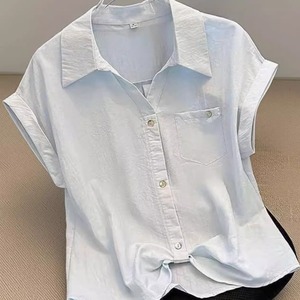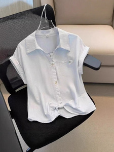 自分用におすすめ〜ポロカラー半袖シャツレディース2025年夏新作ゆったりカジュアルショートトップス