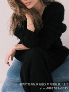 2025 新しいクロスボーダー模造ミンクニットカーディガン女性のヨーロッパとアメリカの怠惰なスタイルのデザインルーズ気質 V ネックセーター女性
