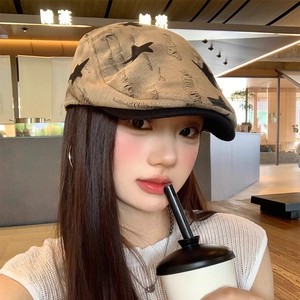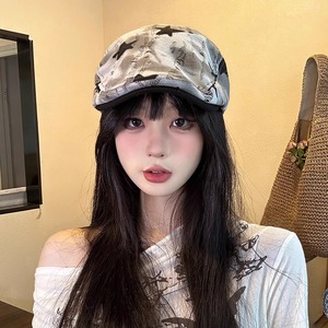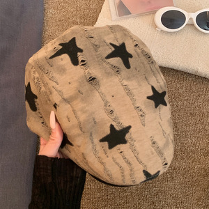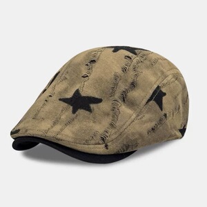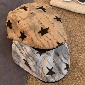 复古做旧星星前进帽女韩版显脸小百搭反戴鸭舌帽大头围贝雷帽子潮