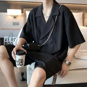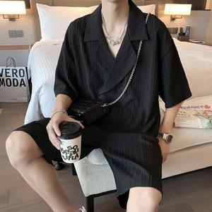 夏大きいサイズ 150kg センスヤッピーハンサムルーズカジュアルスーツメンズショートパンツシャツ 2 点セットイントレンド