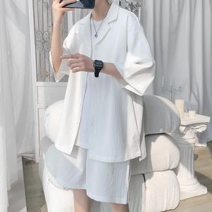 セクシーストリートスーツメンズ夏英国ヤッピーメンズスーツカップル成熟したアイスシルク七分袖シャツ