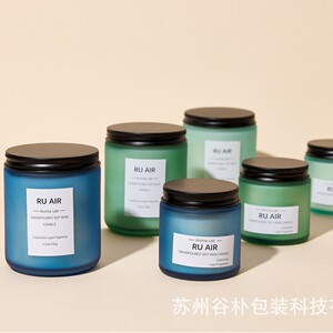 经典蒙砂蜡烛杯玻璃香薰蜡烛罐带黑色金属盖大豆蜡香氛蜡烛容器