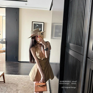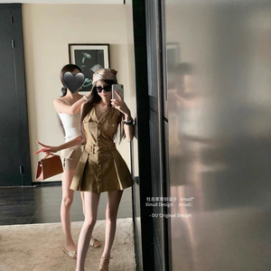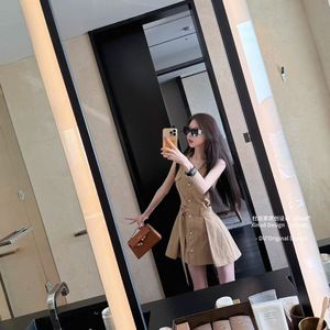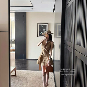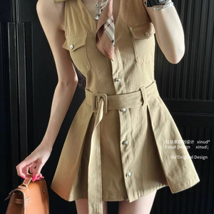 Mr. Du's Manchester City Block*オリジナルワークウェアカジュアルホットガール気質ウエスト痩身VネックノースリーブサマーAラインスカート