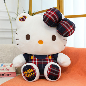クリエイティブチェック柄スカート猫人形キャンパスハローキティぬいぐるみキャッチャーマシン人形かわいい人形外国貿易卸売