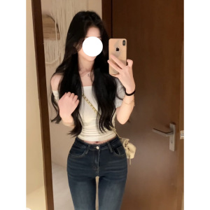 Pure Desire ワンショルダー半袖 Tシャツ女性のための夏 2025 新しいタイトな半袖ホットガールファッション白ショートトップ