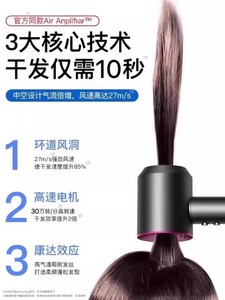 鮮やかなパープル【10億個の保湿マイナスイオン】5つのヘアケアノズル/スムースヘアケア/軽音とノイズ低減/30秒速乾