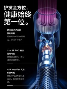 鮮やかなパープル【10億個の保湿マイナスイオン】シングルエアーノズル - 滑らかなヘアケア/軽音とノイズ低減/30秒の速乾