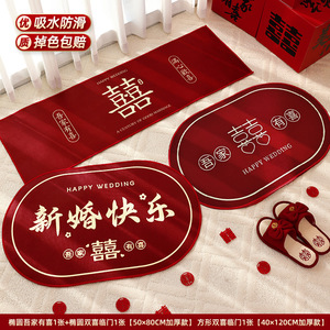 结婚地垫婚房喜庆床边地垫装饰入户门浴室防滑红色脚垫婚庆用品