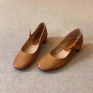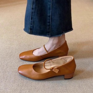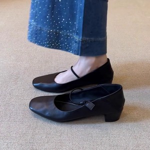 羊皮版~法式气质方头粗跟一字带软皮舒适外穿百搭通勤女浅口单鞋