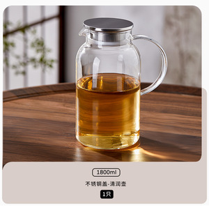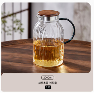 破損保証 2.0L 木目ポット [ステンレス蓋] 高硼珪酸ガラス₳