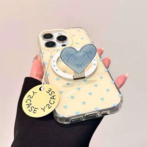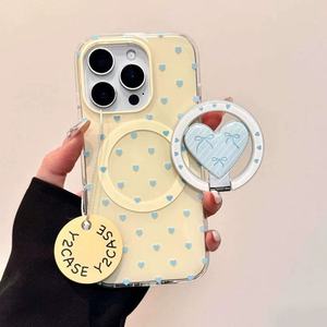 黄底满屏爱心折叠磁吸支架适用iPhone16promax苹果15手机壳14新款