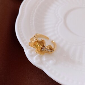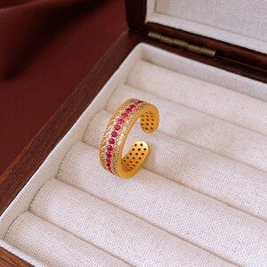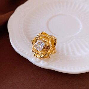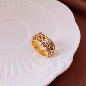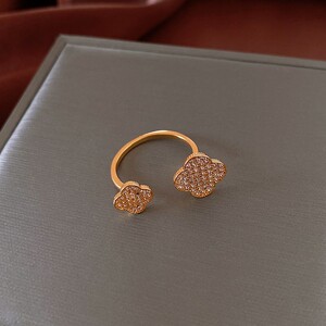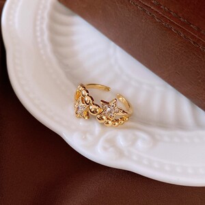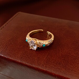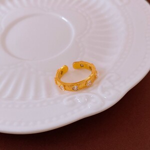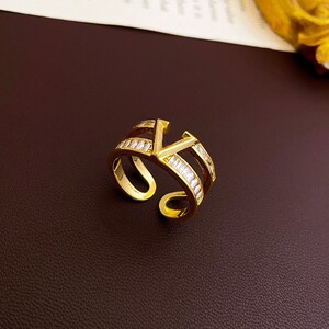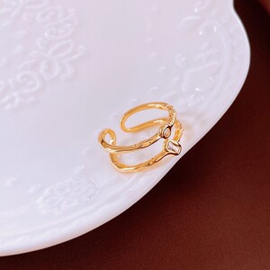 リアルゴールド電気メッキジルコンレター二層オープンリングライトラグジュアリーハイエンドファッション人差し指リングシンプルで多用途なハンドアクセサリー