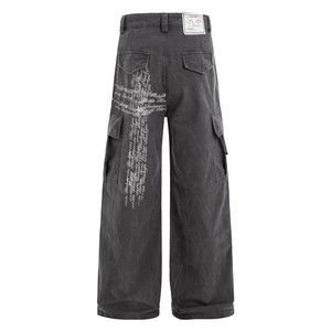 小众设计感工装阔腿裤个性男款高街潮流做旧洗水褶皱宽松拖地长裤