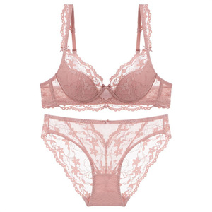 法式绣花蕾丝花边肩边内衣女套装薄款小胸不空杯软钢圈上托文胸罩